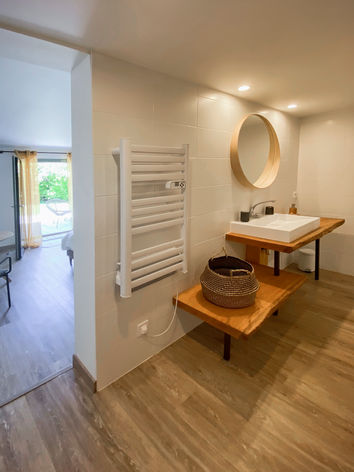 Les trois chambres doubles indépendantes bénéficient d’une terrasse privée ouverte sur un très joli jardin.